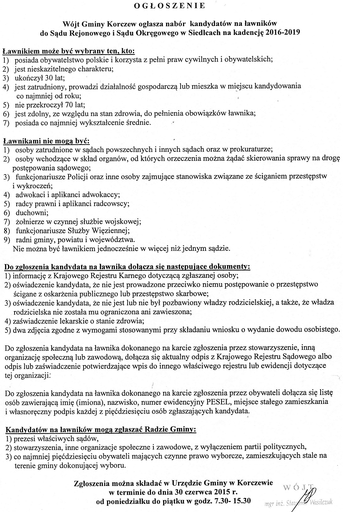 WYBORY ŁAWNIKÓW NA KADENCJĘ 2016-2019