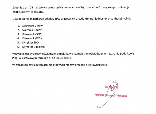 informacja o wynikach analizy oświadczeń majątkowych pracowników urzędu gminy i kierowników jednostek organizacyjnych gminy za 2020 rok